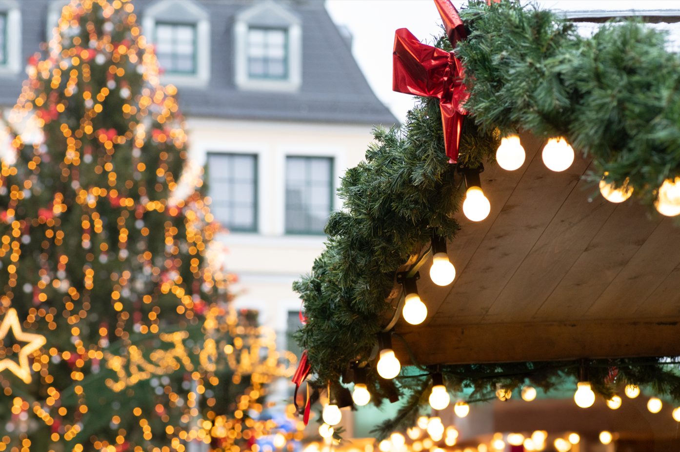 Weihnachtsmarkt in Selb mit dem größten mit Porzellan geschmückten Weihnachtsbaum in Deutschland.