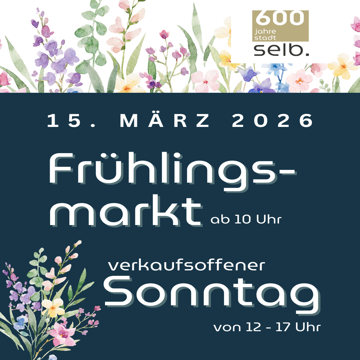 Hier darf man sich ab 10 Uhr auf zahlreiche Marktstände mit einer Vielzahl an Produkten freuen, die passend zum Thema Frühling angeboten werden. Auch in diesem Jahr ist wieder die „Primelaktion“ mit am Start, in Verbindung mit einem verkaufsoffenen Sonntag ab 12 Uhr. Besuchern, die am Marktsonntag in einem an der Aktion teilnehmenden Geschäft einkaufen, bekommen gegen Vorlage einer Quittung vor dem Goldenen Löwen eine Primel geschenkt, in der mit etwas Glück auch ein Gutschein von einem Selber Geschäft versteckt ist.