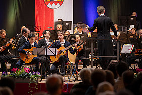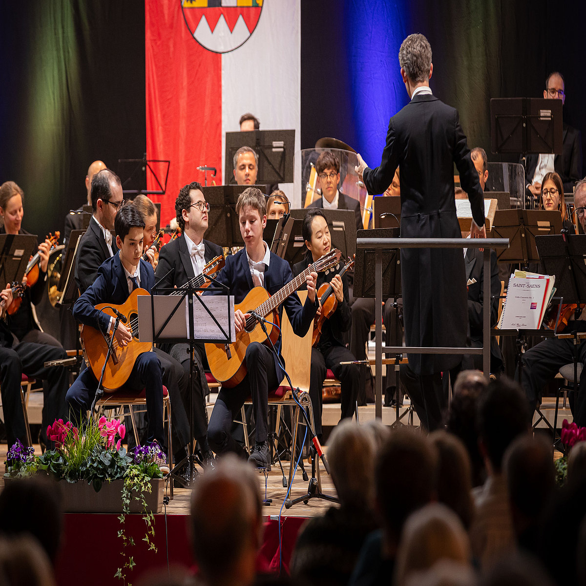 Zwei Schüler der Musikschule der Stadt Selb waren daran beteiligt: Louis Hartmann und Martin Nothhaft. Die Lehrkraft Miloslav Matoušek hat seine beiden Schüler durch viele zusätzlichen Probe- und Unterrichtseinheiten perfekt auf den großen Auftritt mit dem Orchester vorbereitet. Die Hofer Symphoniker begleiteten das lyrische und klare Spiel der beiden Schüler (erste Preisträger im Landeswettbewerb Jugend musiziert 2025) bei ihrem Stück Andante aus Vivaldis RV 532 in der Version für zwei Gitarren sehr fein.