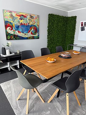 Das Coworking-Angebot umfasst flexibel buchbare Arbeitsplätze in einladender Atmosphäre – ausgestattet mit leistungsstarkem WLAN, Meetingräumen, Druckservice sowie Snacks und Getränken.