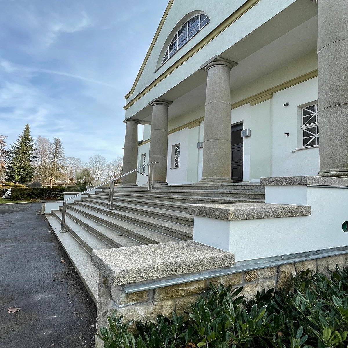 Bei routinemäßigen Arbeiten an der Zugangstreppe des Krematoriums Selb wurden unerwartete Schäden an den alten, witterungs- und salzgeschädigten Fundamenten festgestellt. Eine fachtechnische Untersuchung durch das Ingenieurbüro Dietel aus Schwarzenbach an der Saale bestätigte den dringenden Sanierungsbedarf.