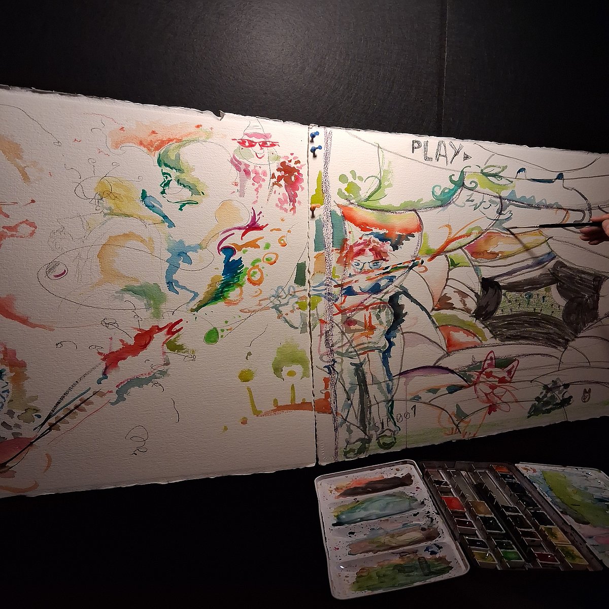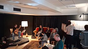 So begleiteten Schüler und Lehrkräfte der Musikschule der Stadt Selb die Live-Zeichen-Session des Künstlers Thomas Joschko.