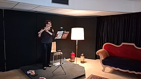 Zu hören waren die Lehrkraft für Querflöte Kamila Cretan und die Schüler Felix Leupold (Landessieger Jugend musiziert) und Louis Hartmann (aktuell qualifiziert für den Bundeswettbewerb Jugend musiziert 2026) aus der Gitarrenklasse der Lehrkraft Miloslav Matoušek.